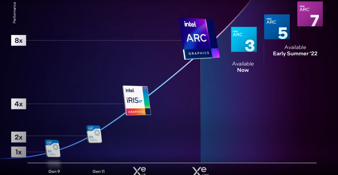 盼望着,盼望着,春天要过去了,英特尔画的大饼总算要落地了。就在昨天晚上,英特尔举行了新的产品发布会。去年在英特尔架构日上预告的 Arc(锐炫)显卡,代号炼金术士( Alchemist ),总算是如期而至。
