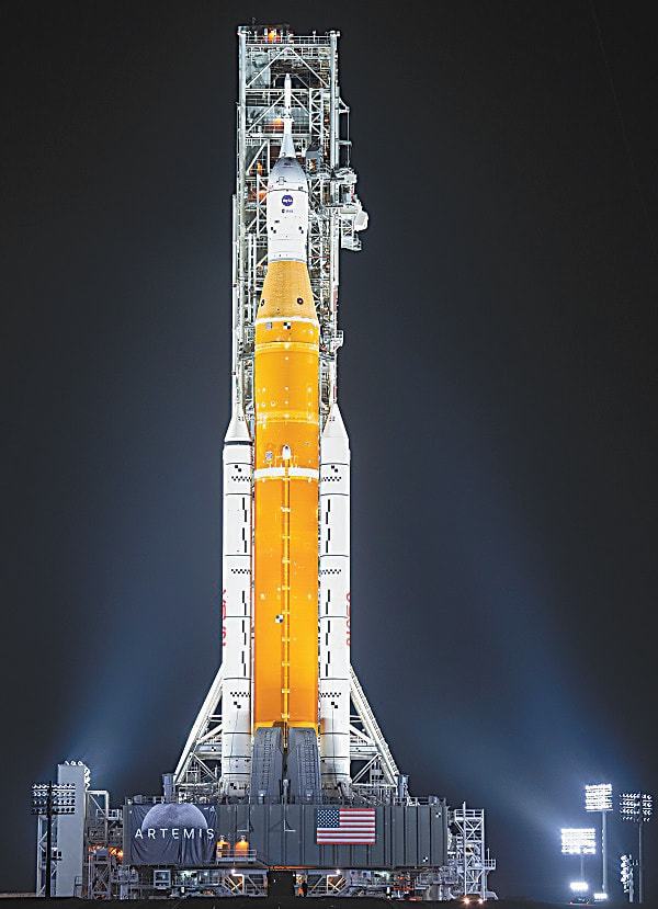 几经拖延之后,为美国“阿尔忒弥斯”载人登月计划量身打造的“太空发射系统(SLS)”重型火箭终于站上了发射台(下图)。英国广播公司称,“美国史上最大、最贵和拖延最久的超级火箭”即将于4月3日进行正式发射前最关键的“湿装彩排”。