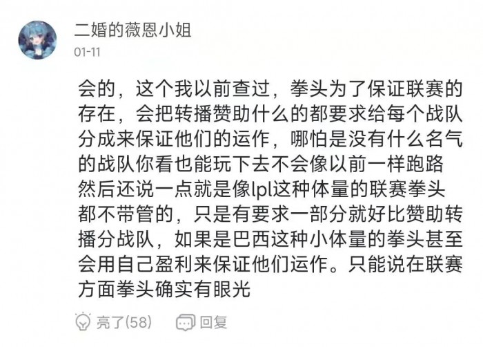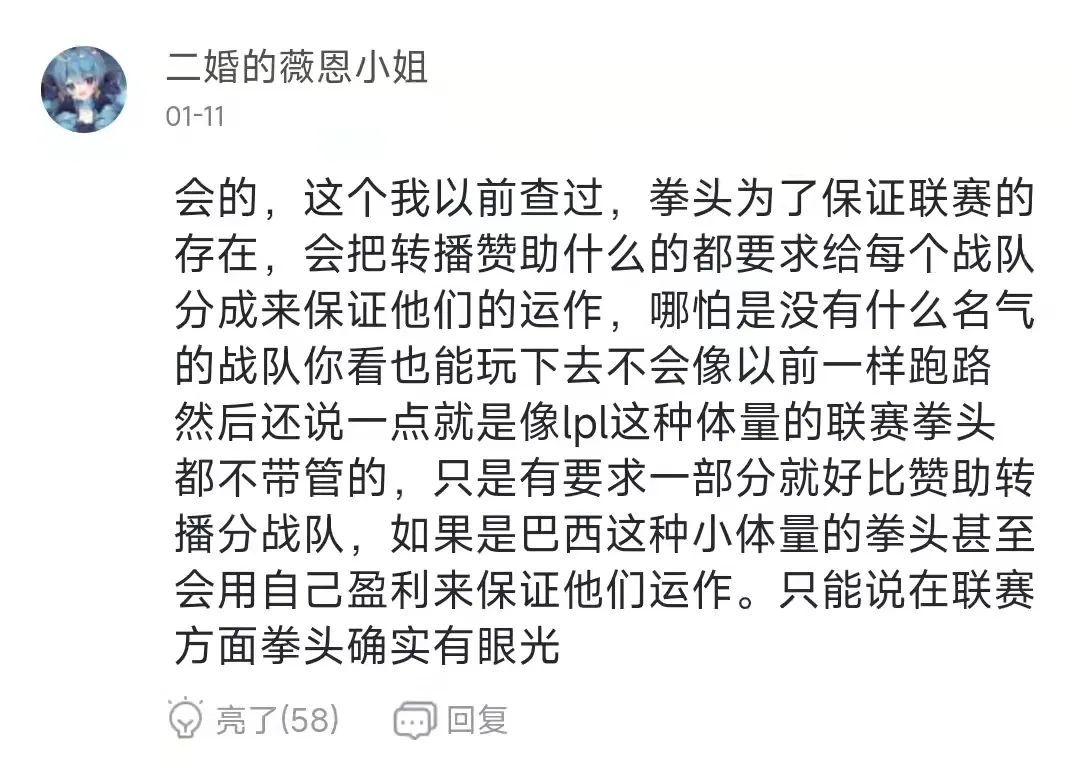 据说 LPL 收到的巨额转播费,还有广告商赞助费这类的,都会分给战队点儿,好歹让大家都有点汤喝,让拿不到啥奖金的小俱乐部不至于饿死。