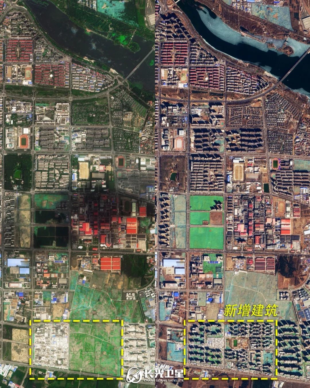 从对比照可以看出,五年来顺义区增加了不少新的建筑,原本的很多空地都已经被填满。