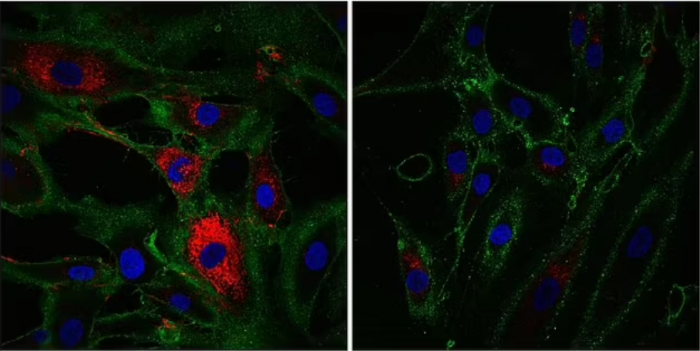 在实验中,衰老细胞获得了能生成胶原蛋白的皮肤细胞的标记物