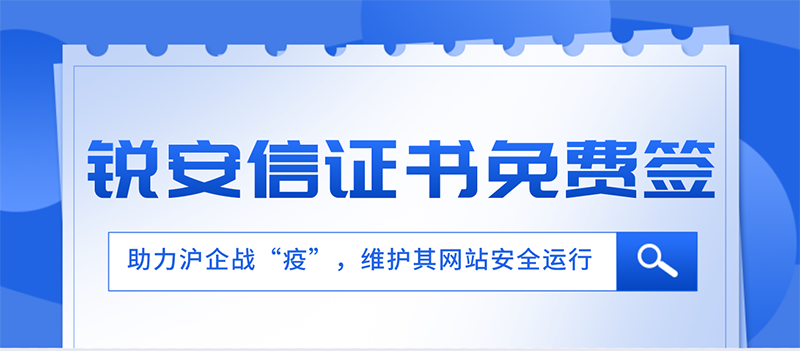 自上海疫情发生以来,许多企业应防疫要求而居家办公,导致部分企业无法正常提交SSL证书的申请、续费流程。为帮助企业网站的安全运行,上海锐成特此推出“锐安信SSL证书免费送”的限时活动,全力保护网站以及消费者的数据安全,避免证书过期给企业带来不安全风险及损失。