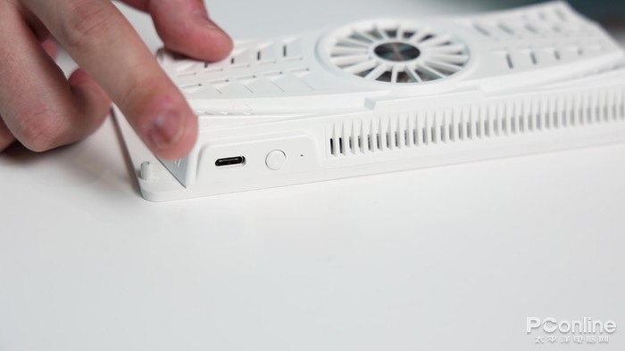 侧边应该是进风口,有开关键和Type-C电源接口,不得不说,从外观上来看用料确实挺足的。