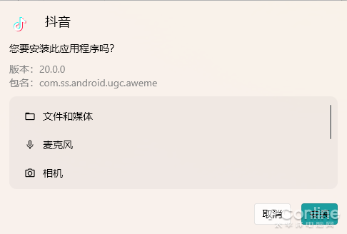 首先出厂的是一款傻瓜式的Android应用安装程序——“WSA Pacman”,下载回来安装后,它就会自动关联Android应用安装包,这时候用户只需要双击Android应用安装包,就会出现安装提示,这里还可以看到该应用所需要的权限。像安装Windows软件一样安装Android应用就这么简单。