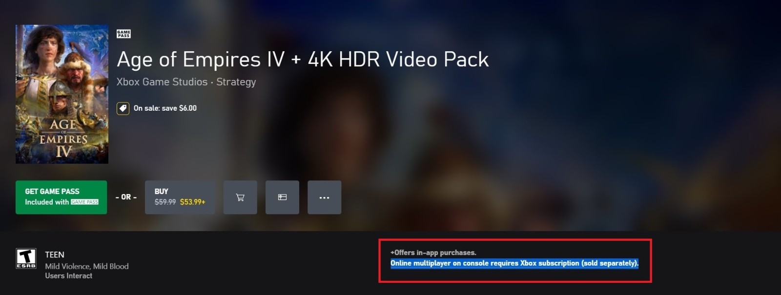据Exputer报道,《帝国时代4》的微软商店详情页似乎表明,这款游戏可能不久会登陆Xbox主机,页面上写道:“主机上的在线多人游戏需要Xbox订阅。”