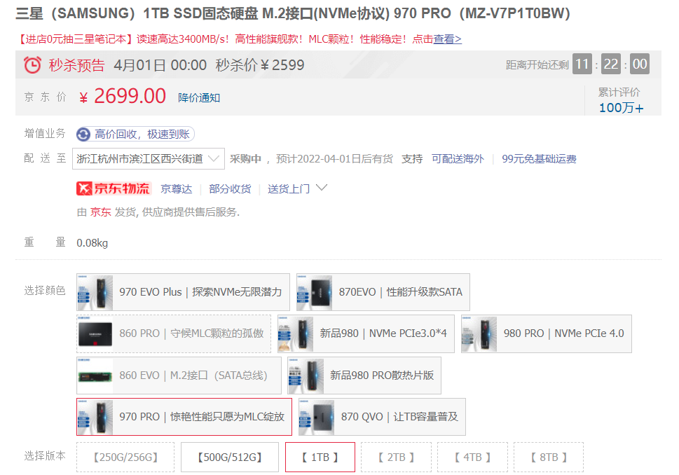 三星970 EVO Plus 899元