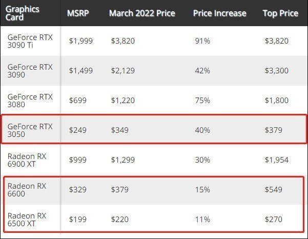 RTX 3050、GTX 1660Ti及AMD RX 6500 XT可以入手了!