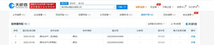 前段时间,茅台官方打造的“抢酒”平台i茅台App已经正式上线,引起了不小的关注,未启用就已经拿下App Store免费榜第一,至今依然榜上有名。根据天眼查App显示,贵州茅台酒股份有限公司i茅台APP安卓版及苹果版均获得登记批准,版本号为V1.0.0,登记批准日期为4月8日。
