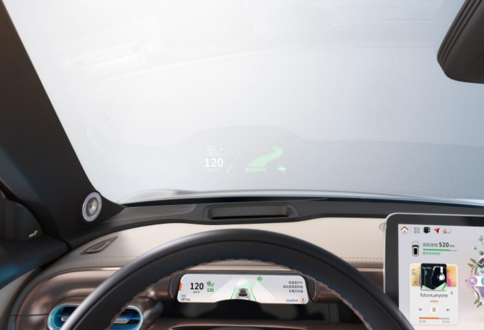 内部设计更是极尽豪华和精致感,中控台依旧呈现出环抱驾驶员的斜面样式,保留了造型简洁而复古的方向盘,驾驶位前方是9.2英寸的细长全液晶仪表以及HUD抬头显示。