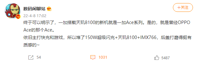 上周一则新传闻称,即将推出的 OnePlus Ace 智能机,将搭载联发科天玑 8100 芯片组、且支持 150W 高功率快充。当时许多人推测,该机只是 realme GT Neo3 的一个马甲。不过现在,Geekbench 基准测试数据库已经曝光了它的关键规格。