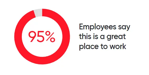 英伟达公司在美国的员工多达 9440 多人。在《财富》杂志最近编制的调查中,有95%的员工同意该公司是一个伟大的工作场所。研究显示,97% 的人以成为公司员工为荣。管理层表明,他们不仅有道德,而且对每个员工都很诚实,95% 的员工认为英伟达为社会做了大量的工作,也会尽力完成任务。