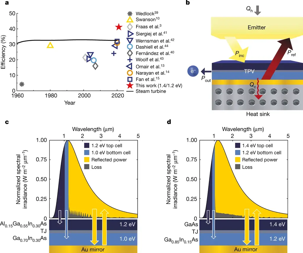 来自麻省理工学院和美国国家可再生能源实验室(NREL)的研究团队已成功开发并展示了一种热光伏(TPV)电池,它能够比传统的蒸汽涡轮机更有效地将热量转化为电能。