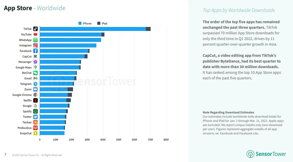 TikTok 现在是全球今年下载量最大的应用程序。根据分析公司 Sensor Tower 周四发布的报告,自 2022 年年初以来,这款社交媒体应用的下载量超过 1.76 亿次,使 TikTok 成为第 5 个总下载量达到 35 亿次以上的应用。