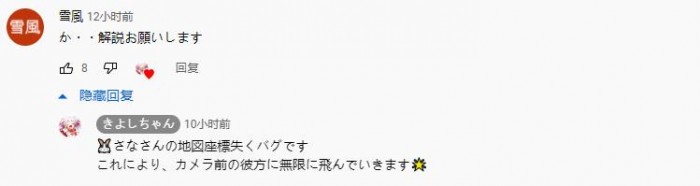 一名“雪风”用户询问博主是怎么做到的,“きよしちゃん”博主表示自己利用了地图坐标丢失的Bug,这可以使自己朝前方无限飞行。