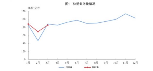 3月份,全国快递服务企业业务量完成85.4亿件,同比下降3.1%;业务收入完成818.5亿元,同比下降4.2%。