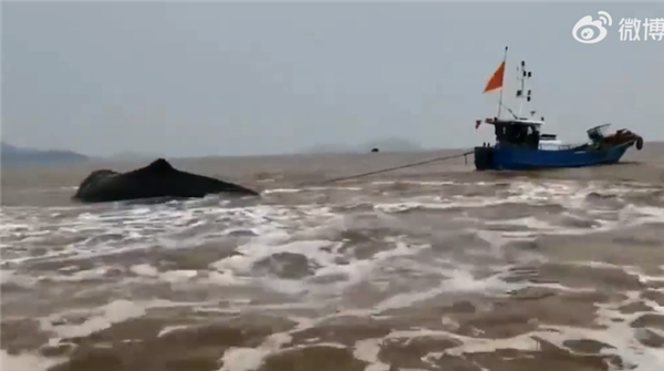象山相关部门已派出五艘船进行救援,但由于鲸鱼体型庞大,几种方式都失败了,而且目前由于退潮,无法拖动鲸鱼,只能先尽量原地保护,救援人员用被子盖住鲸鱼身体,进行保湿,等晚上涨潮了再想想其他办法。
