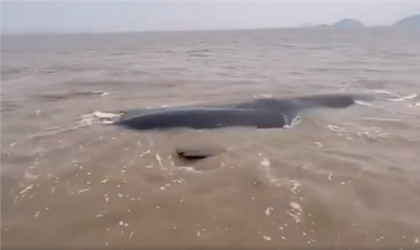 据专业人士介绍,这种常年生活在深水区的大型动物,一旦搁浅就会出现大的问题,目前只能是祈祷它能够撑到涨潮。