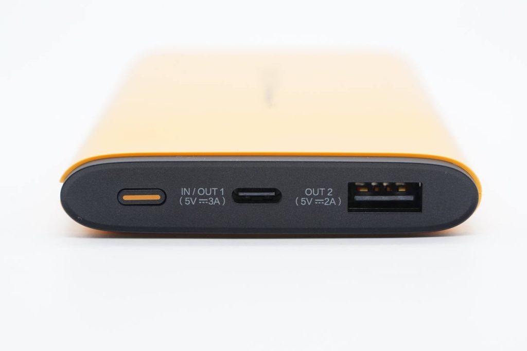 撕掉封条可以看到这一端设有电源键、1A1C双USB接口,接口旁还印有参数。