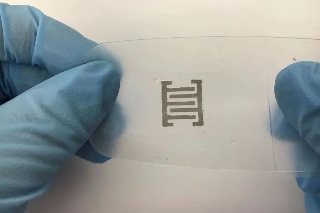 通过对海藻酸盐进行化学改性并向其添加钙,科学家们能够提高银纳米线的功能和稳定性。由此产生的水凝胶被打印在一个灵活的硅胶板上,其表面被一个类似模板的东西部分覆盖。