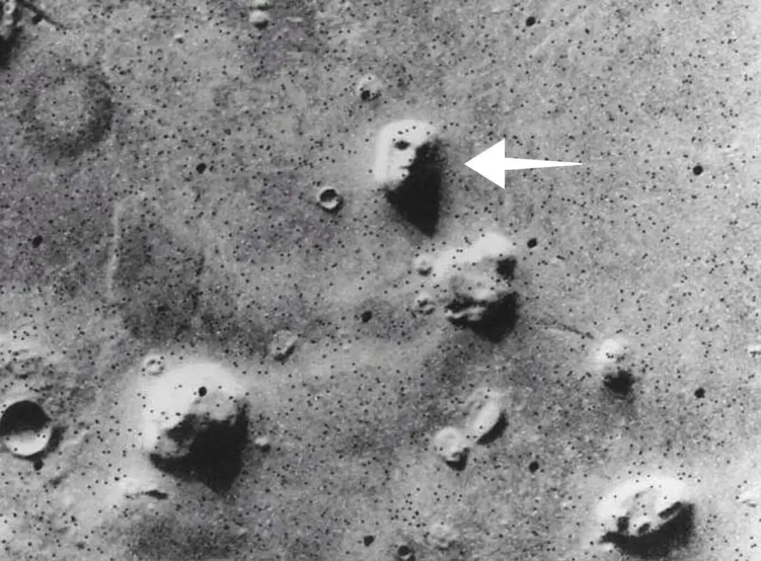 火星之脸(其实只是一块火星岩石,由于拍摄角度的光学错觉才形成了人脸形状)
