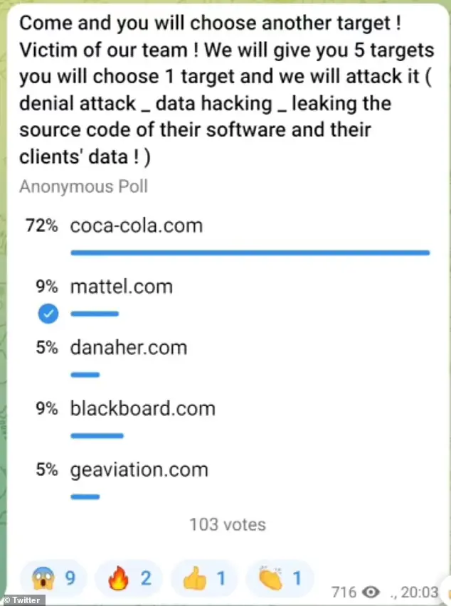 Stormous 在宣布成功入侵之前,曾在 Telegram 上发起投票,询问它应该针对哪家公司,而可口可乐公司获得了最多的选票。据 CISO Advisor 报道,被盗文件中包括金融数据、密码和商业账户。