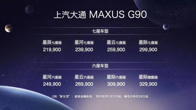 4月29日,上汽大众MAXUS旗下全新G90正式上市,新车共推出8款车型,分为6座和7座两种版本,售价区间为21.99-32.99万元。作为一款中大型MPV车型,G90长宽高分别为5280/1999/1845mm,轴距为3200mm,主打高端商务出行市场,当然,也兼顾部分家用需求。