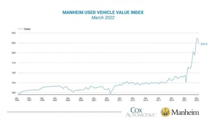 根据实时追踪美国汽车经销商购买待售二手车的批发价格的曼海姆二手车价值指数显示,在今年1月刷新历史纪录记录之后,美国二手车指数已经连续两个月下降。与 2 月份的整个月份相比,3 月二手车批发价格下降了 3.3%。除面包车外,所有主要细分市场均出现季节性调整后的价格下降,其中 SUV 下降幅度最大。