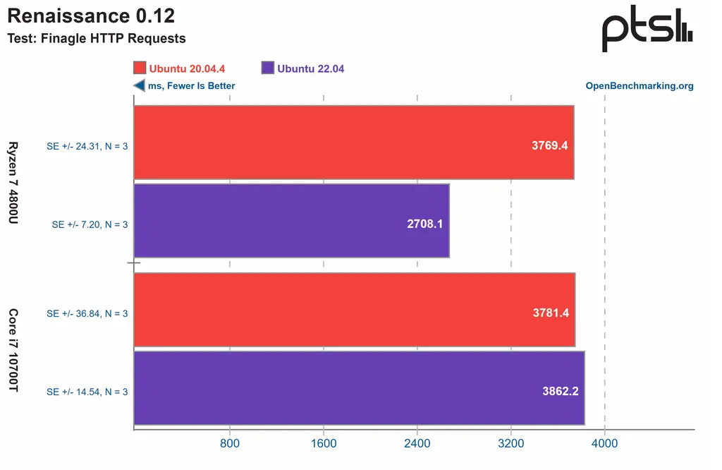去年 12 月,Linux 5.16 对基于 Zen 3 的 Ryzen 5000 APU(代号为 Cezanne 和 Lucienne)进行了性能优化。虽然 Ubuntu 22.04 LTS 是基于 Linux 5.15 内核,但是 AMD 处理器的表现也非常不错。根据 Phoronix 的最新实测,与 Ubuntu 20.04.4 LTS 相比,代号为"Renoir"的Ryzen 4000 APU 在 Ubuntu 22.04 LTS 上有出色的性能增益。