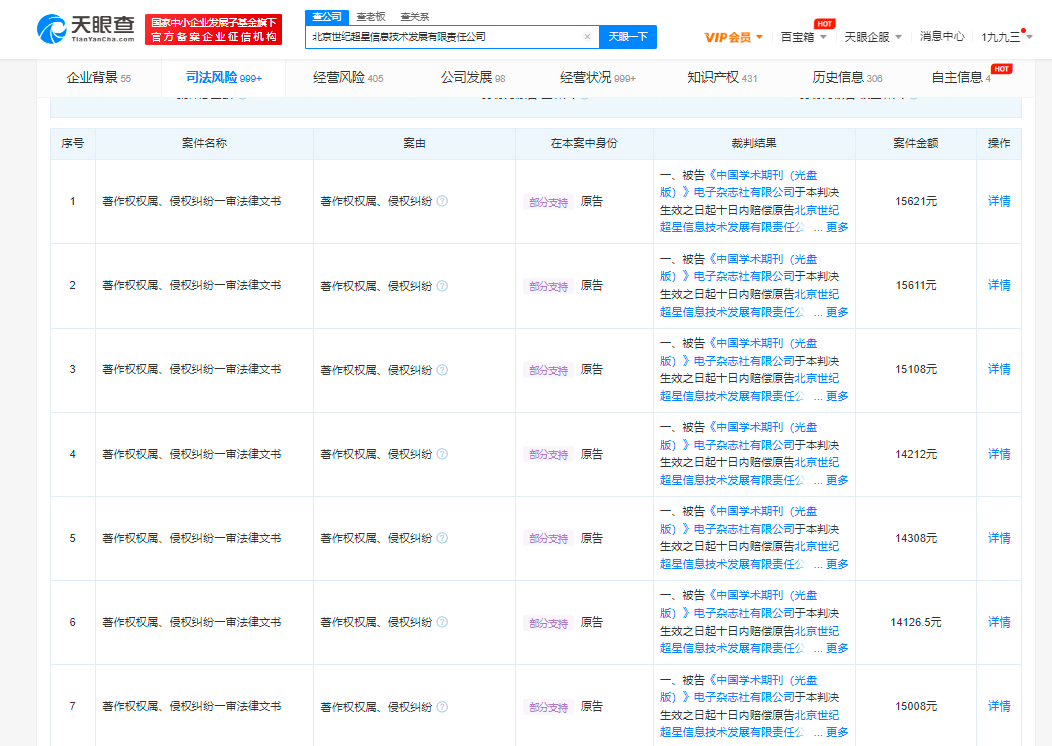 值得一提的是,世纪超星公司此前已多次起诉学术期刊公司并胜诉,案由多为著作权权属、侵权纠纷。