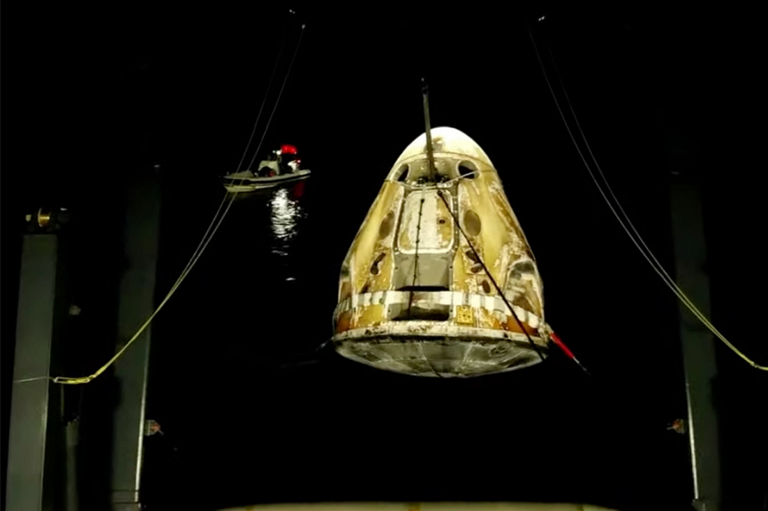 四名宇航员于美国当地时间5月6日凌晨乘坐SpaceX载人龙飞船成功返回地球,以此结束了他们在国际空间站(ISS)长达六个月的停留。在周四清晨从国际空间站脱钩后,船员们穿过地球大气层并于美国东部时间凌晨00:43在佛罗里达州海岸的降落伞下降落。