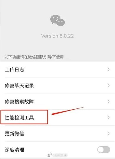 在关于微信中,能找到“性能检测工具”的入口,点击进入之后可以看到,这其实是一个“性能检测工具”,可以实时监控手机当前的CPU占用率、屏幕帧数以及温度等核心数据。