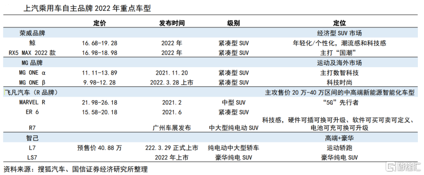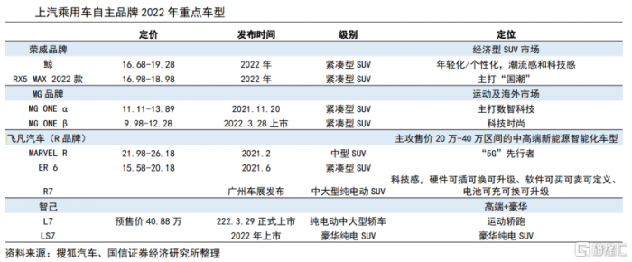 2021年1月,上汽集团联合上海浦东新区、阿里巴巴,投资百亿打造高端智能纯电汽车项目智己汽车,已推出明星车型智己L7,预计今年量产;智己品牌对30万元以上市场,定位高端+豪华。
