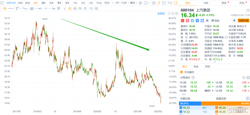 股市看的是未来,若是不能在新能源的新时代有所建树,股价下跌自然是挡不住。