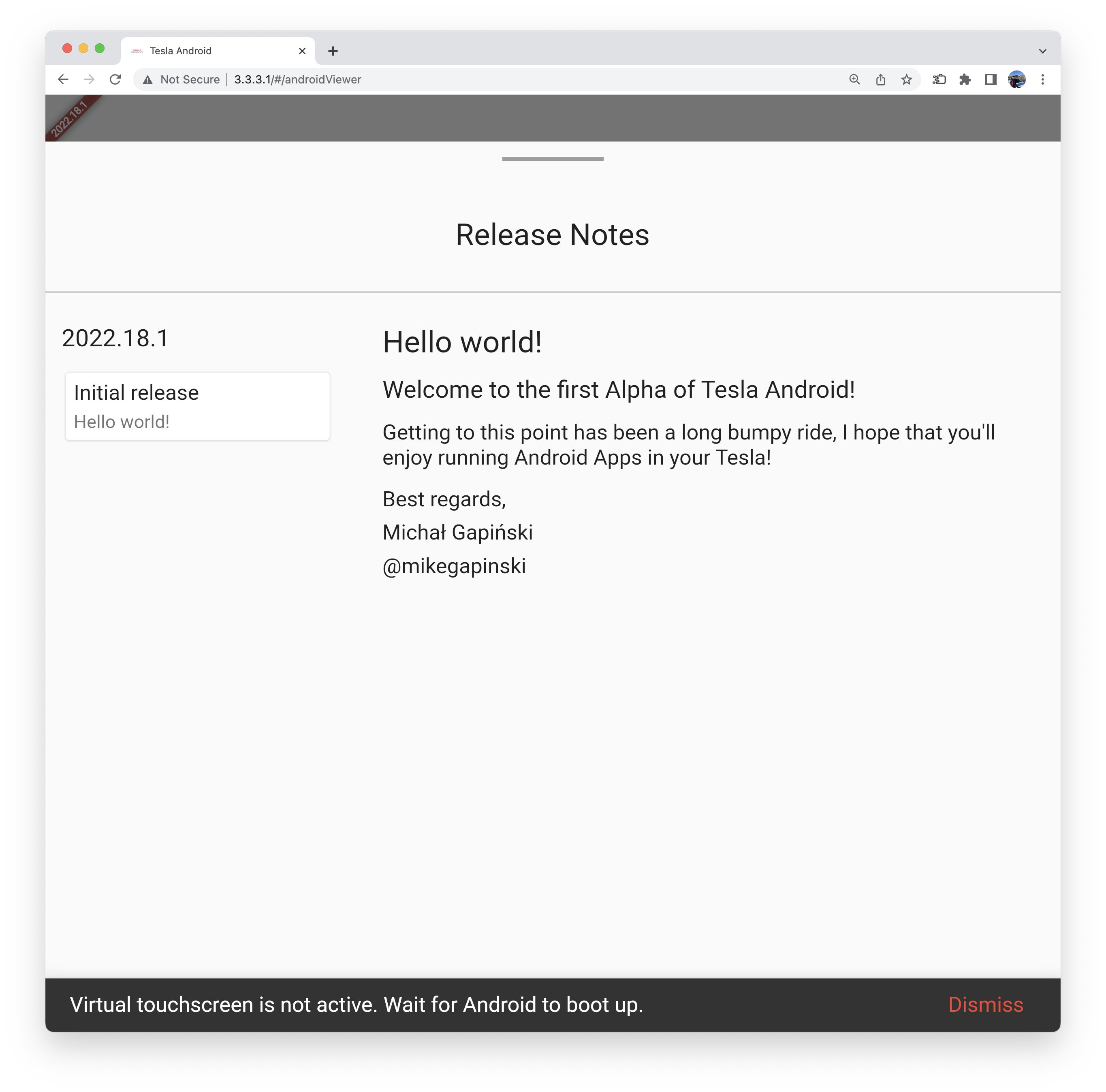 经过六个月的工作,Gapiński现在已经在Github上发布了"特斯拉Android"的第一个公开可用的Alpha版本,供其他人下载和尝试: