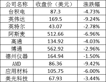 美股中的主要芯片股表现如下: