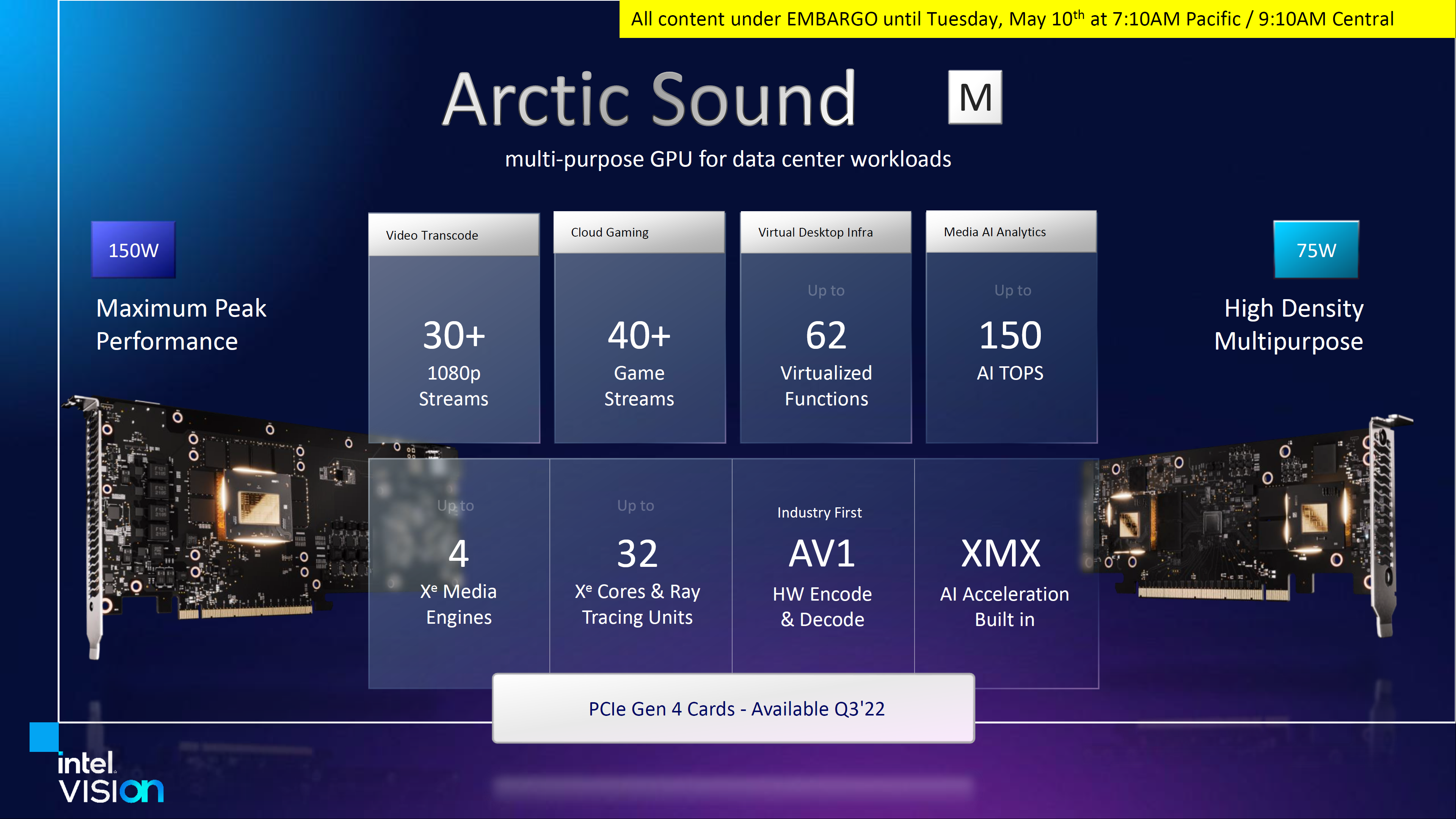 如果一切顺利,英特尔 Arctic Sound M 系列 GPU 加速卡将于 2022 年 3 季度上市。