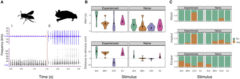 据观察,当所有的嗡嗡声都发出时,猫头鹰倾向于远离扬声器,但在非嗡嗡声的情况下,它们却会靠近。这一点在野生猫头鹰身上表现得尤为明显,因为它们有更多捕杀蝙蝠和被大黄蜂蜇伤的经验。
