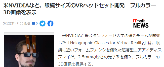 VR设备一直不温不火,原因或许很大程度归结于“笨重”的头显上,日前据外媒报道,英伟达正联合斯坦福大学研究组开发一款真正意义的“VR眼镜”, 眼镜尺寸大小方便使用而且显示效果更强。