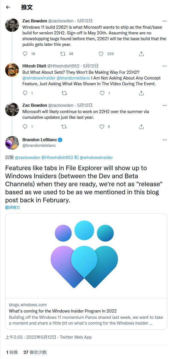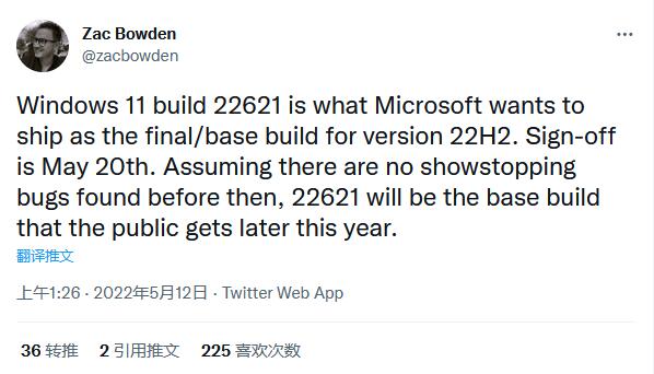 不过,Windows Central 的 Zac Bowden 似乎非常有信心,最近的 Beta 通道获得的 Build 22621 是一个将成为 Windows 11 22H2 的最终版本,将在今年晚些时候全面上市(GA)。Bowden 还补充说,微软将在 5 月 20 日签署该版本,离现在还有一个星期。