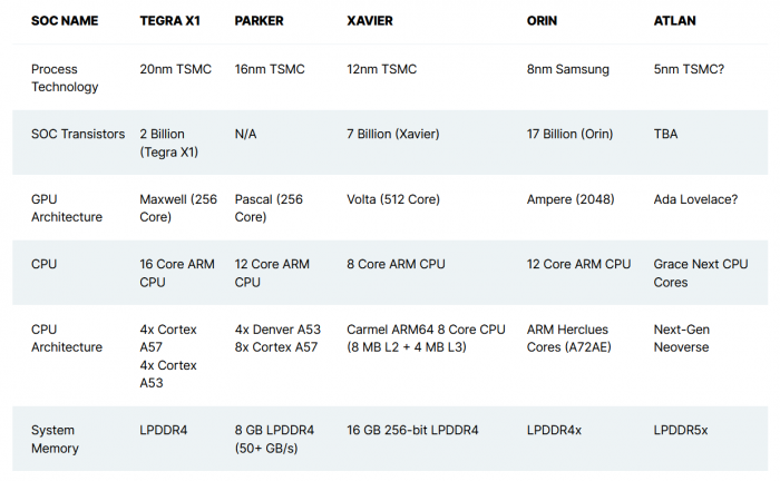 该SOC将使用的具体GPU似乎是Ampere GA10F,据传该芯片据说(或传言)具有与ORIN相同的SEC8N速率,1024 FP32速率,或ORIN的一半。该SOC也将可能支持AV1。