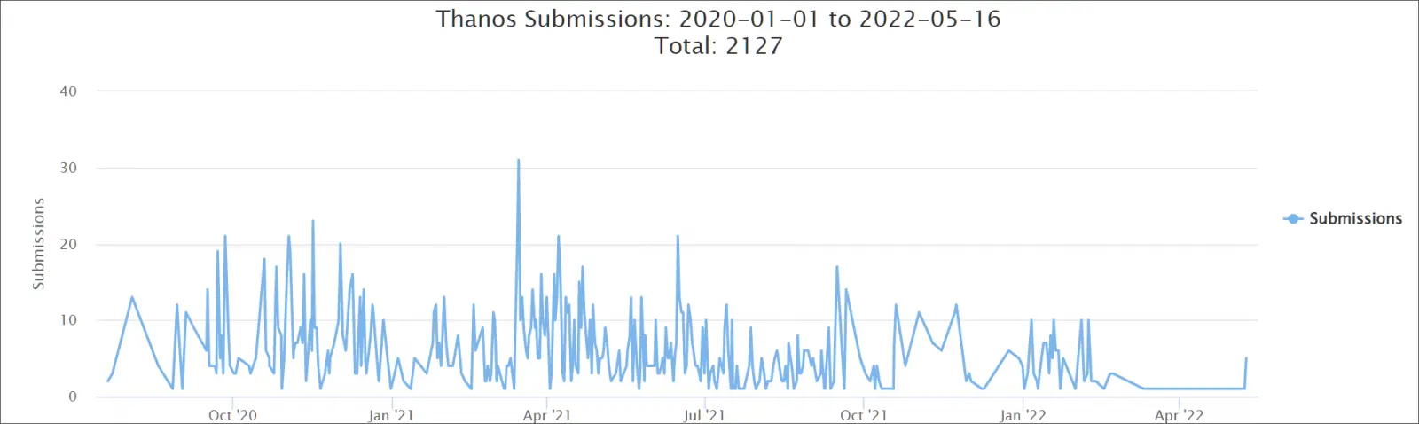 这款勒索软件在2022年2月停止出现在ID-Ransomware的提交中,而勒索软件的构建者在2021年6月在VirusTotal上被泄露。