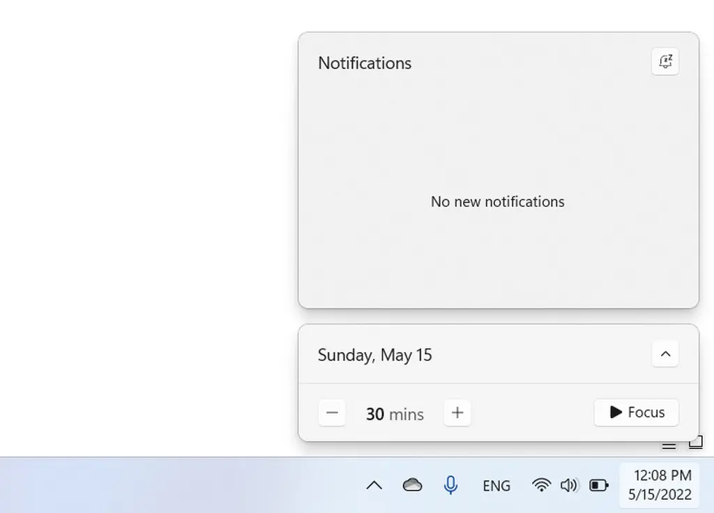 Focus 是一个略微高级的功能,允许你创建定时器来专注于特定的任务,并通过减少分心来提高你的生产力。你可以从时钟应用、设置应用或任务栏上的日历飞出启动一个新会话。专注会议可以自动启动免打扰模式,隐藏通知徽章,并禁用图标闪烁。