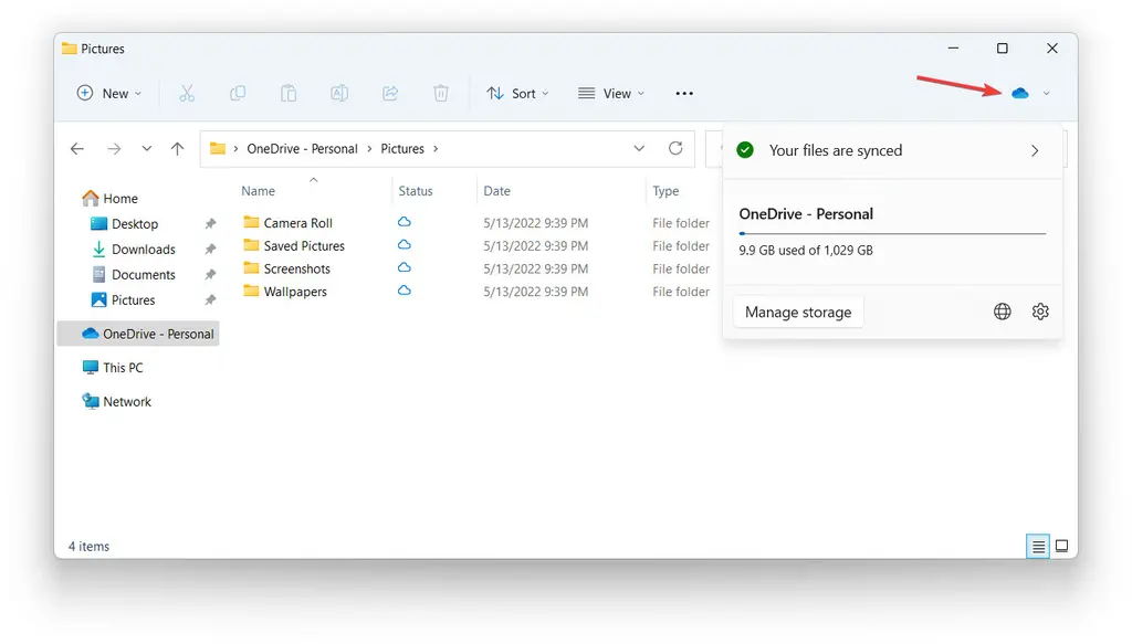 在 Windows 11 22H2 中,现在更容易检查你的 OneDrive 状态和存储。文件资源管理器收到了一个新的按钮,可以触发一个弹窗关于你的OneDrive的详细信息。你可以看到还剩多少空间,检查同步状态,打开OneDrive for Web,并进入OneDrive设置。这不是最具突破性的变化,但它使 Windows 11 中的OneDrive的使用略微更方便和直观。