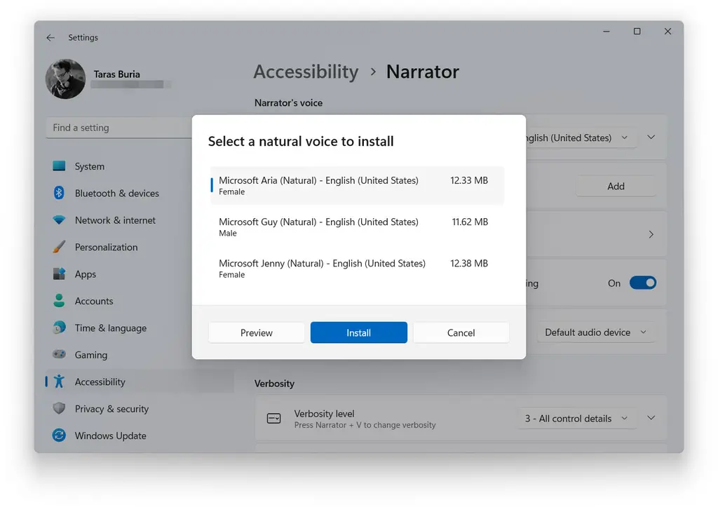 在听到客户对Narrator体验的反馈后,微软终于在为Narrator增加自然语音,使视力障碍者能够享受浏览网页、阅读、编写邮件等场景。与语音访问功能一样,Narrator自然语音也支持美式英语。