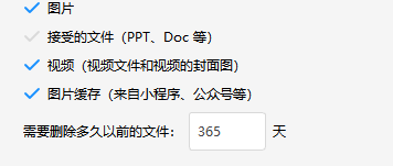 差友们还可以在设置里选择你需要删除的文件类型,比如只删除图片、视频缓存数据,然后再根据自己的需求输入一个需要删除多久之前的文件。