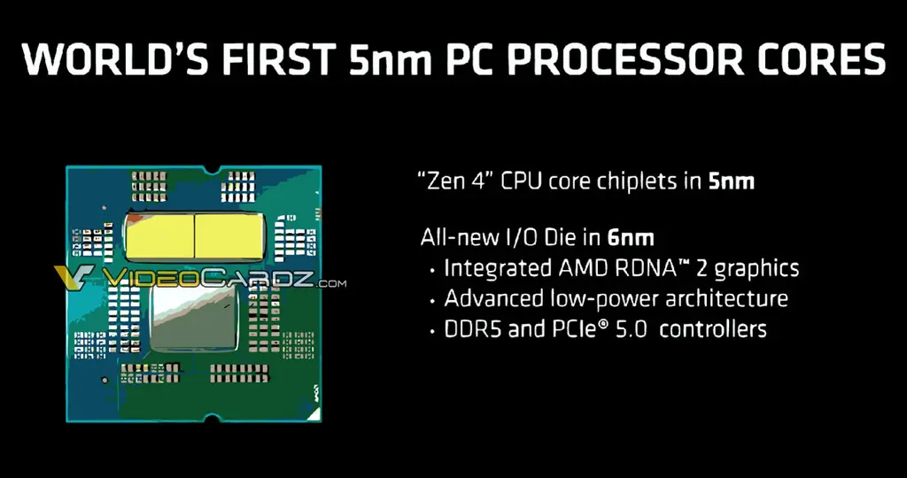 AMD 还透露散热片下有两个 5 纳米 Zen4 核心芯片和一个 6 纳米 I/O。AMD还确认其Zen4桌面CPU将采用集成RDNA2图形。新的台式机 Ryzen 7000 系列正式定于“今年秋天”"推出,但至于具体日期目前尚不清楚。