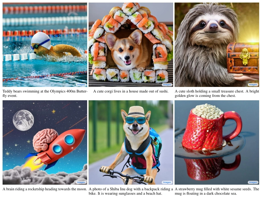 Google的研究人员称Imagen的进步覆盖几个方面。他们称,现有的文本模型可用于文本编码部分,其质量比单纯提高视觉保真度更重要。这在直觉上是有道理的,因为一张详细的胡言乱语的图片肯定比一张稍微不详细的图片更糟糕。