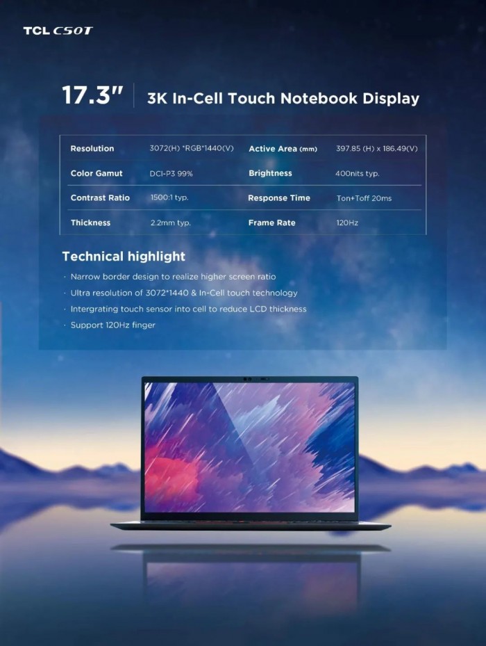 从参数来看,联想新一代的ThinkBook Plus那块17.3英寸的3K 21:10触控大屏,大概率就是TCL华星的这块屏幕。