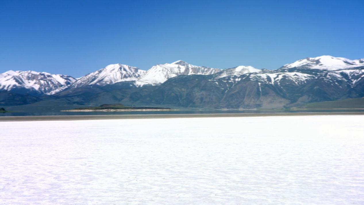 在某个时间莫诺湖的一部分湖水里溶解了很多矿物质,然后随着湖面的消退,湖水蒸发,留下了这些矿物质就是结晶盐。