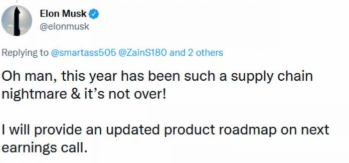 马斯克也曾在Twitter上表示:“今年真是一场供应链噩梦,而且这场噩梦到现在还没有结束。” 四月疫情影响,芯片萎缩,汽车行业也到了大浪淘沙的时候了。”